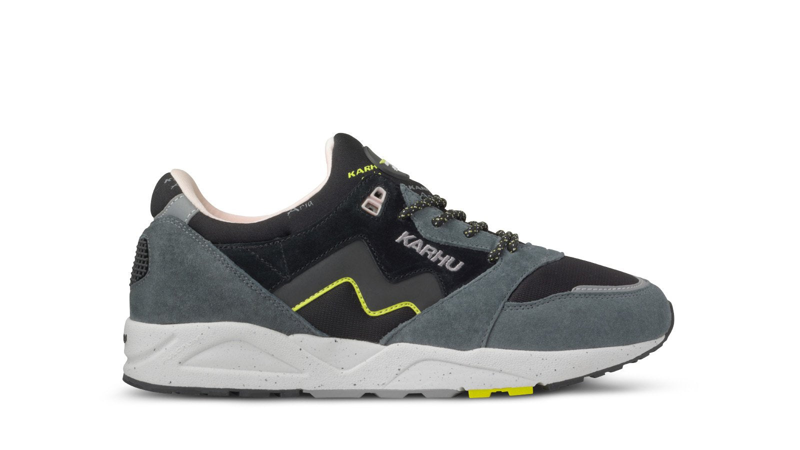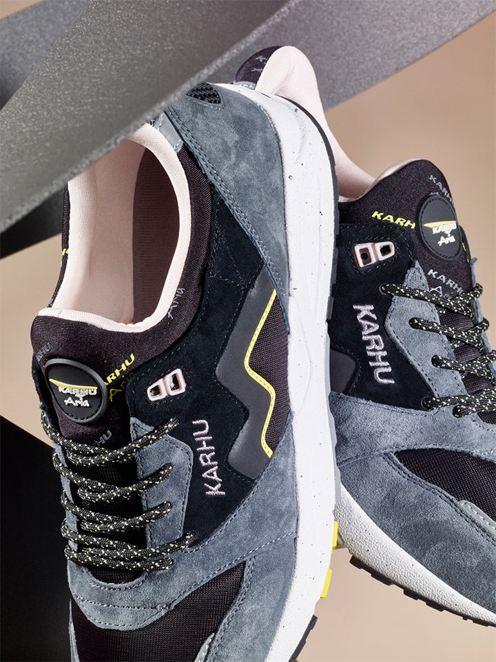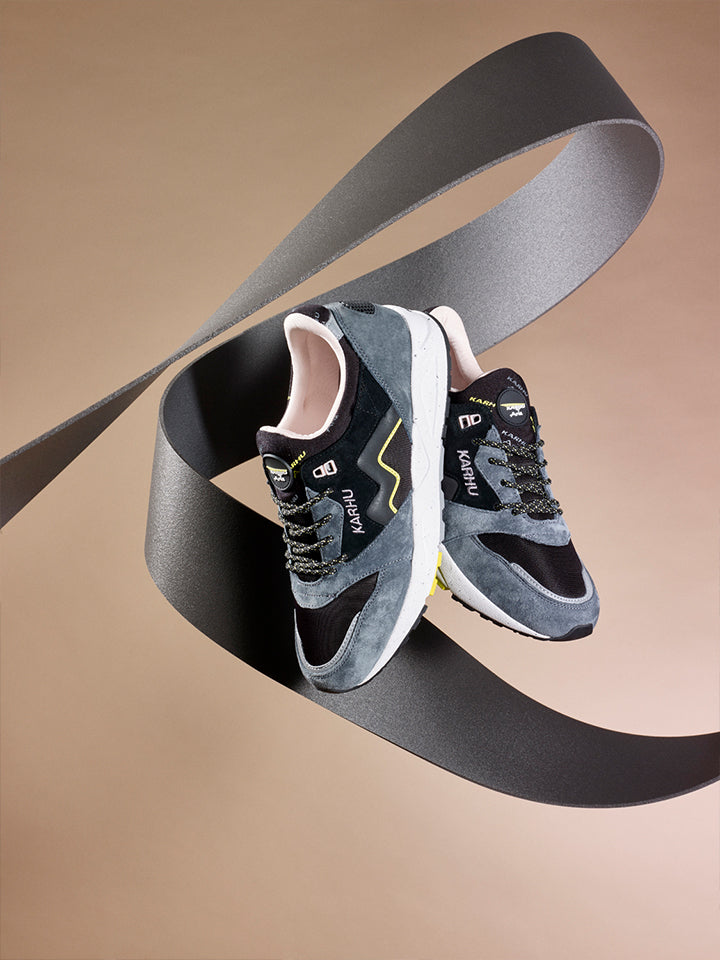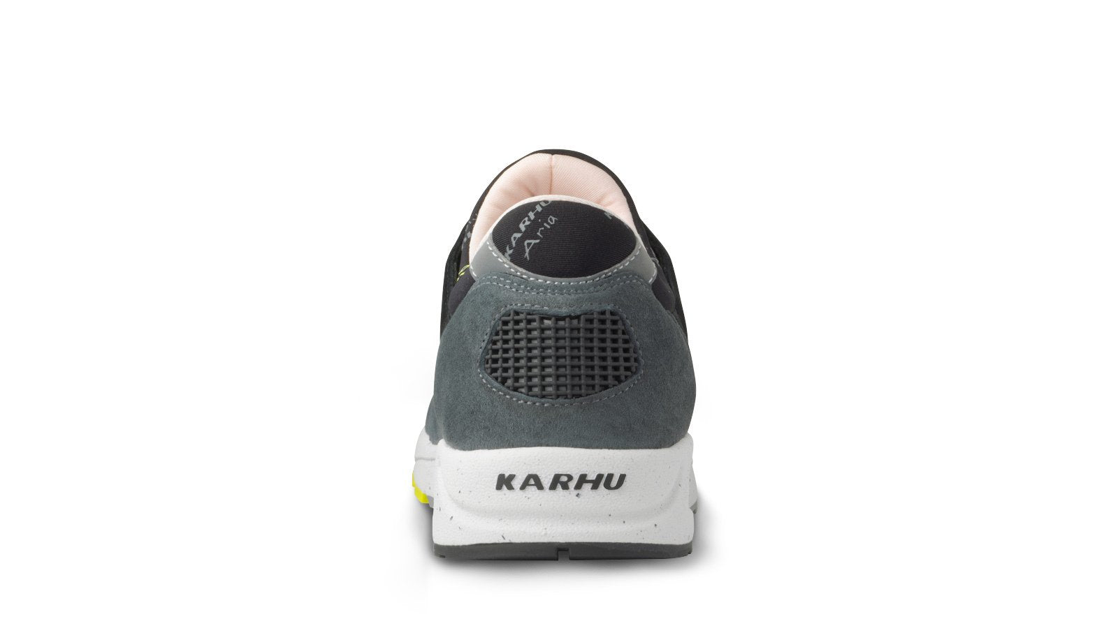 THE MID 90'S VERSION OF THE ARIA FEATURED TWO TECHNOLOGICAL INNOVATIONS IN RUNNING FOOTWEAR: AN INTERNAL CARBON FIBER FULCRUM IN THE MIDSOLE FOR A SMOOTH TRANSITION, AND A MONO TONGUE UPPER CONSTRUCTION FOR ADDED COMFORT. THIS ICONIC 90S KARHU MODEL IS AN EASY TO WEAR AND COMFORTABLE SHOE AND REMAINS AN INTEGRAL PART OF THE FW20 KARHU LEGEND COLECTION.