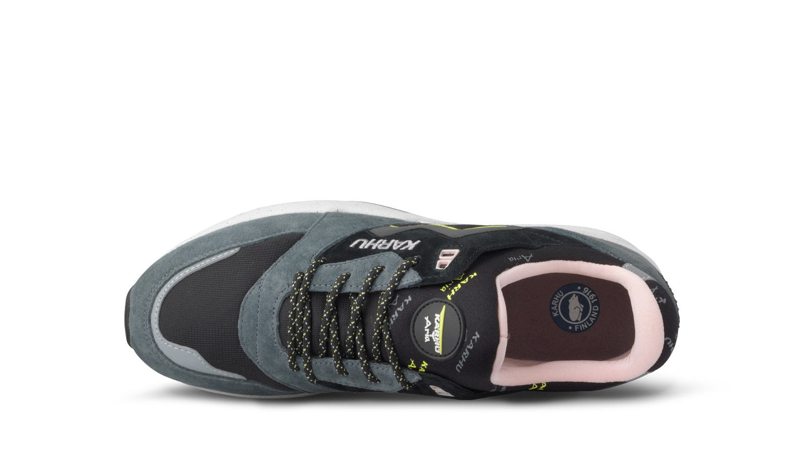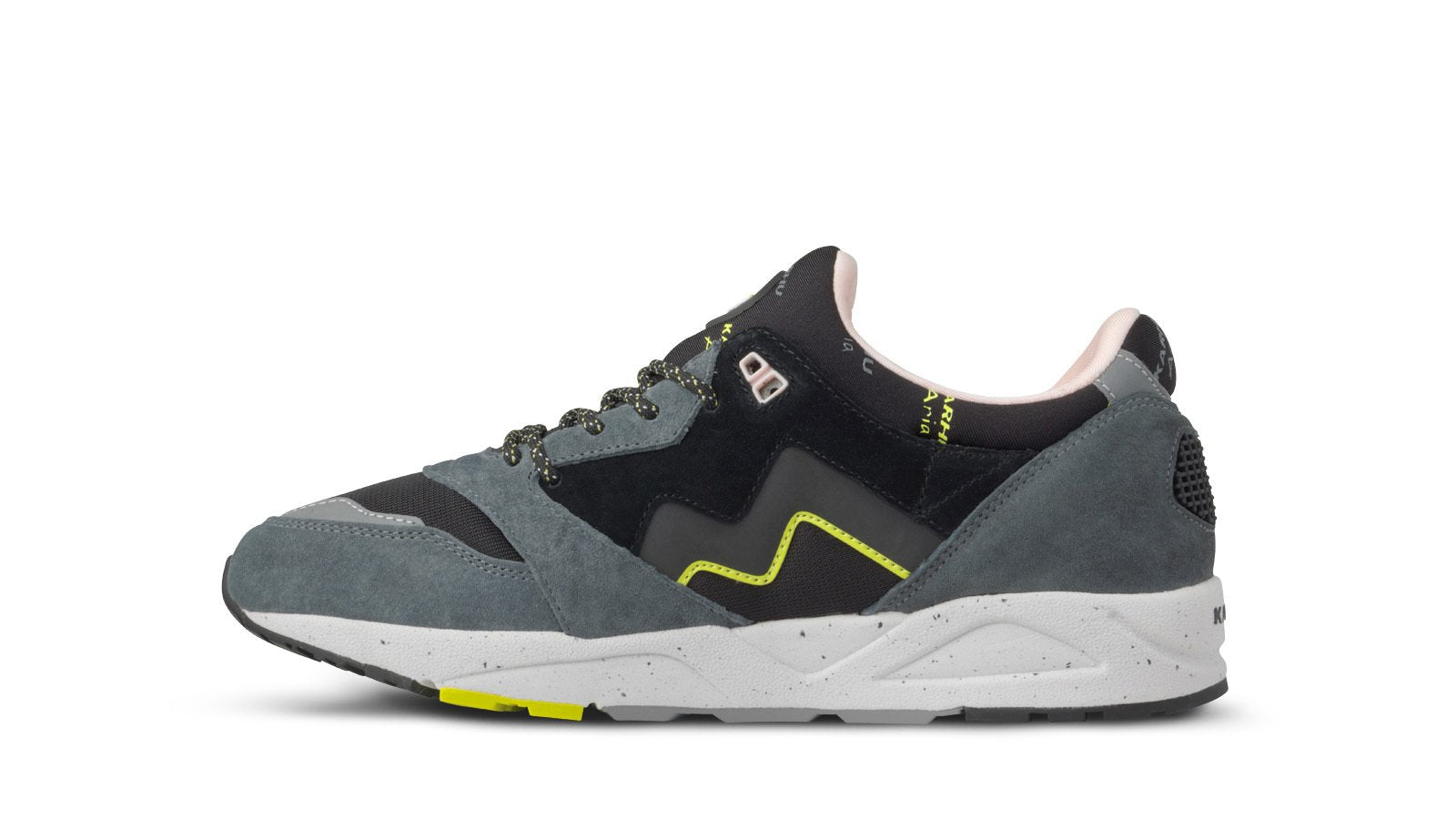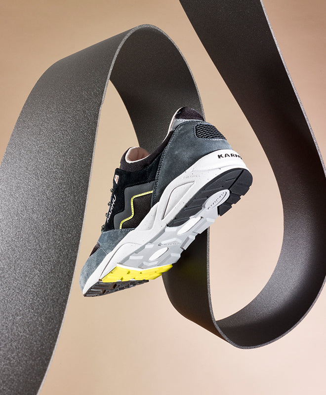 THE MID 90'S VERSION OF THE ARIA FEATURED TWO TECHNOLOGICAL INNOVATIONS IN RUNNING FOOTWEAR: AN INTERNAL CARBON FIBER FULCRUM IN THE MIDSOLE FOR A SMOOTH TRANSITION, AND A MONO TONGUE UPPER CONSTRUCTION FOR ADDED COMFORT. THIS ICONIC 90S KARHU MODEL IS AN EASY TO WEAR AND COMFORTABLE SHOE AND REMAINS AN INTEGRAL PART OF THE FW20 KARHU LEGEND COLECTION.